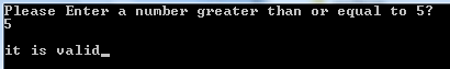 imagine the case where we need an input “greater than or equal to 5” and we want to warn the user if they use invalid input (less than 5). We can use the code below: