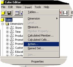 In Cube Editor, on the Insert menu, click Action.