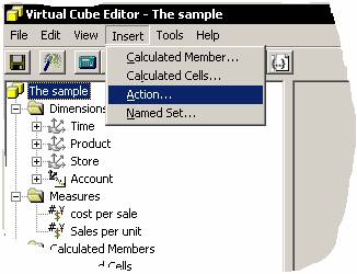 In Virtual Cube Editor, on the Insert menu, click Action.