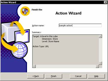 In the Finish step, specify the action name. Click Finish.