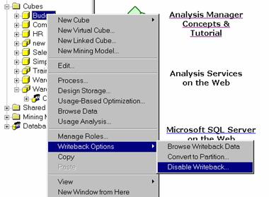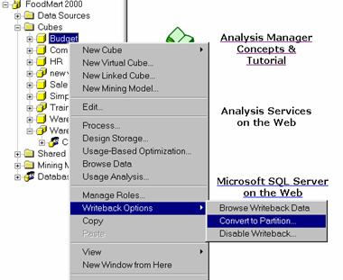 Right-click the cube, point to Writeback Options, and then click Convert to Partition.(These options are available only for write enabled cubes)