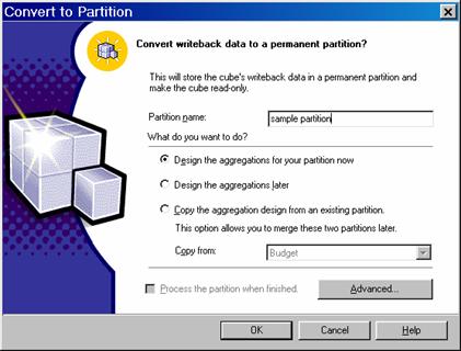 To process the new partition, select the Process the partition when finished check box. Depending on the size of the writeback table, processing may take considerable time.