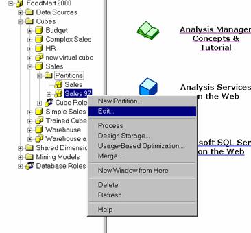 In the partitions folder right click the Sales 97 partition and click Edit.