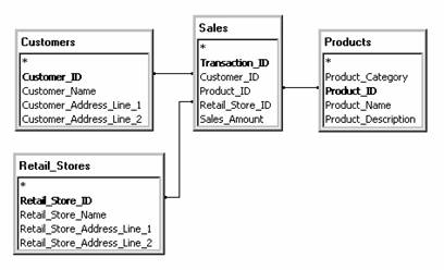 Look at the example in the following picture,. It is a simple illustration of how measures are used. Sales_Amount is the measure in the Sales Fact table. The dimension of each of the other tables contain a common element with the fact table:–Product_ID, Customer_ID, Retail_Store_ID. Each cell in the returned dataset would contain a sales value aggregated from the Sales_Amount.