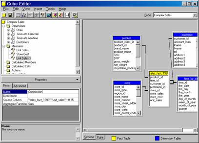Change the Source Column property to “Sales_fact_1998”.”unit_sales” * 0.15, and type Commission for the name property