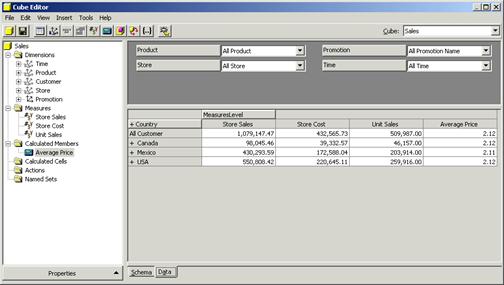 The calculated member gets defined.  Click Ok to come back to the cube editor with the average price displayed as a calculated member