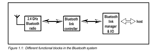 Bluetooth radio technology provides a universal bridge to existing data networks, a peripheral interface, and a mechanism to form small private ad hoc groupings of connected devices away from fixed network infrastructures. Designed to operate in a noisy radio frequency environment, the Bluetooth radio uses a fast acknowledgment and frequency hopping scheme to make the link robust. Bluetooth radio modules avoid interference from other signals by hopping to a new frequency after transmitting or receiving a packet. Compared with other systems operating in the same frequency band, the Bluetooth radio typically hops faster and uses shorter packets. This makes the Bluetooth radio more robust than other systems. Short packages and fast hopping also limit the impact of domestic and professional microwave ovens. Use of Forward Error Correction (FEC) limits the impact of random noise on long-distance links. The encoding is optimized for an uncoordinated environment.