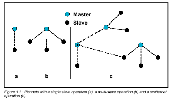 An interesting aspect of the technology is the instant formation of networks once the bluetooth devices come in range to each other. A piconet is a collection of devices connected via Bluetooth technology in an ad hoc fashion. A Piconet can be a simple connection between two devices or more than two devices. Multiple independent and non-synchronized piconets can form a scatternet. Any of the devices in a piconet can also be a member of another by means of time multiplexing i.e a device can be a part of more than one piconet by suitably sharing the time.